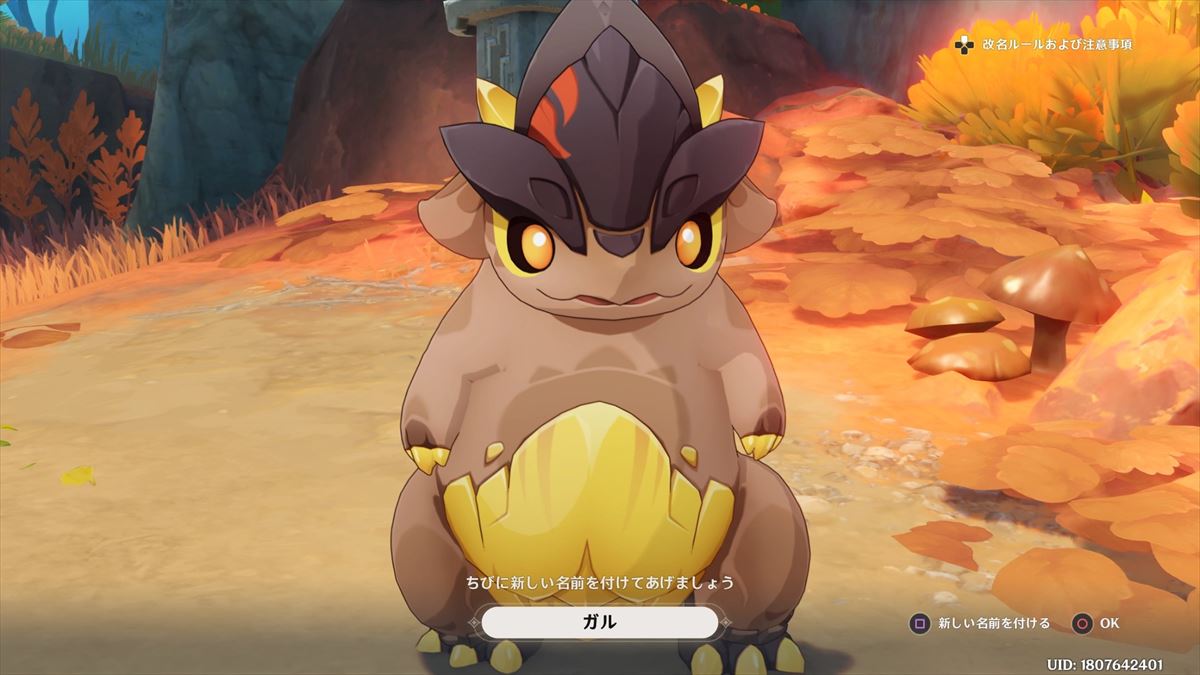 戦闘を終えると小さな竜の名付けイベントが始まります。ポケモンのガルーラの子供っぽい見た目をしていたのでガルという名前にしました。特に意味はありませんし、ガルという名前に愛着があるわけではありません。