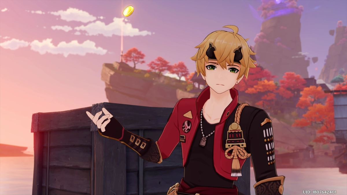 稲妻に着いたらイケメン登場。北斗が最近知り合った商売仲間でトーマというそうで、ファデュイの公子に若干似ているような気がしました。この手の顔を見ると勝手に脳内で櫻井孝宏ボイスが流れるのですが、どうやら違う模様。テイルズオブグレイセスのアスベル系の顔はみんな同じボイスで再現されてしまいます。