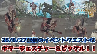 さて本日はモンハンワイルズのお話です。今回は、8/27に配信された2種類のイベントクエストを攻略していきます。めっちゃ批判寄りの意見が多いギターコラボと、配信予定から1週間遅れたピッケル武器のイベントとなっているので、気になる方はお早めにどうぞ!