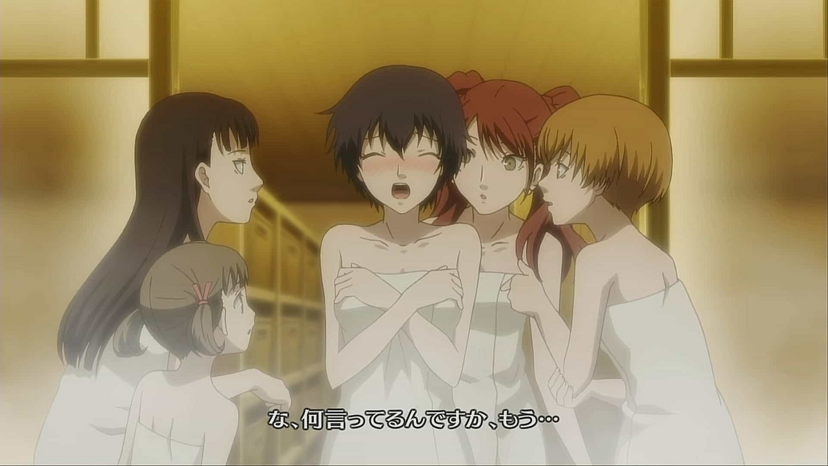 文化祭の打ち上げは雪子の家の旅館で行います。ここで初めて直斗の女の子らしい一面が見られます。いつもの立ち絵では隠されている双丘が露わになっていますね。ボクっ娘とのギャップがたまりません。