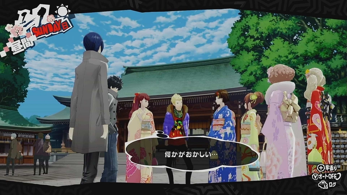 クリスマスイベントが終わると強制的に12月31日までジャンプします。上の画像はいつもの怪盗団メンバー+芳澤かすみで今年一年お疲れ様会的な会を催している様子です。