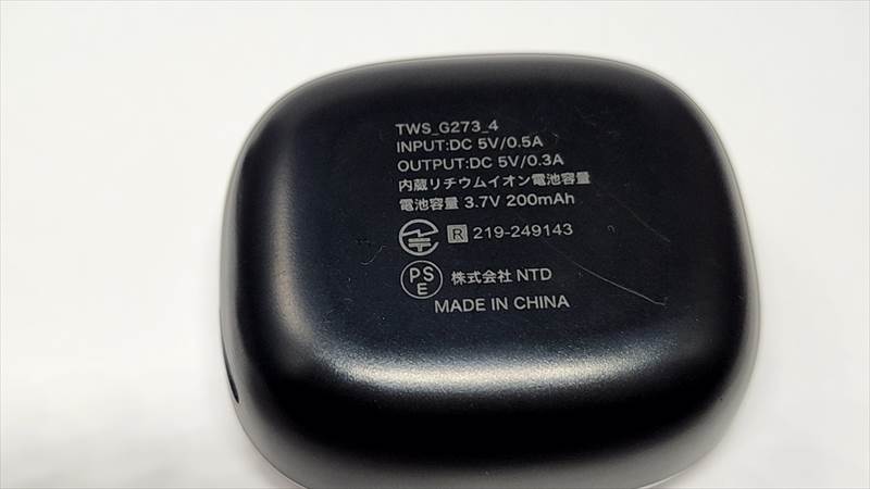 ケースの裏側には使用が書かれています。ちゃんとPSEマークも付いていますね。ただ、製造国はバッチリ”MADE IN CHINA”です。まぁ、最近はパナソニックなどの国産メーカーもMADE IN CHINAと書かれたものがあるので、ここはまぁ気にしなくてもいいでしょう。
